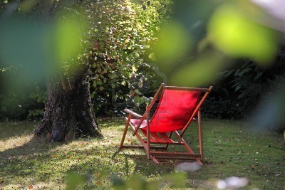 A red deckchair primed for its lazy occupant