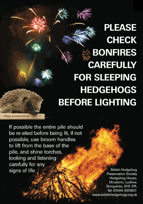 So please check your bonfire site closely for hedgehog activity. Unlike Guy Fawkes, he has no experience of explosives and no sense of history for 1605!
